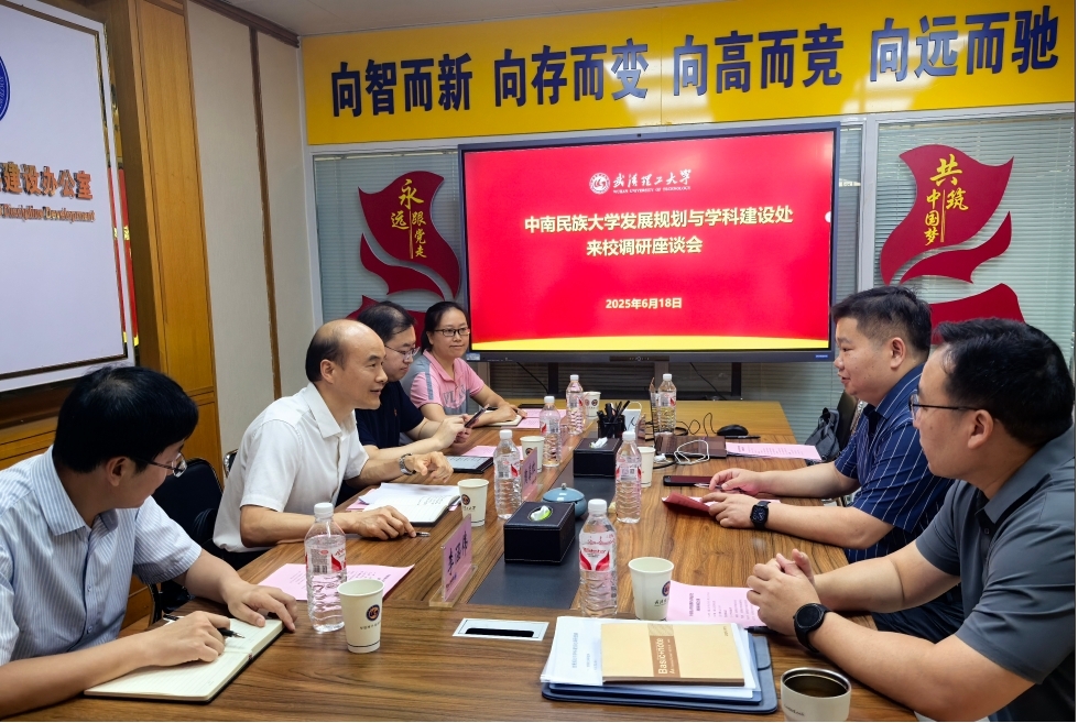 6月18日上午,必赢官网发展规划与学科建设处处长陶喜红带领调研组赴武汉理工大学,专题调研发展规划与“双一流”建设工作。武汉理工大学发展规划与学科建设办公室主任范涛、副主任刘刚等热情接待并参与座谈。