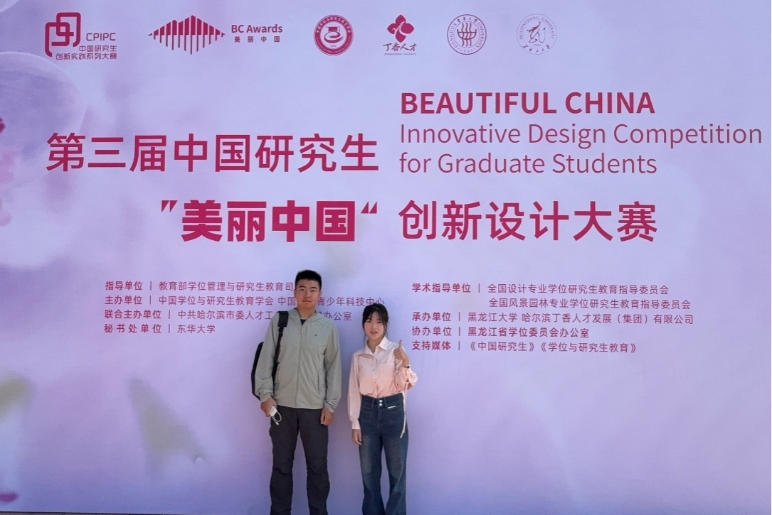 这是必赢官网研究生院第一次组织研究生团队参加该项赛事,美术学院学子积极参赛并载誉归来。“青设山河”团队苏巧玉、张弘毅同学前往哈尔滨现场参加总决赛并荣获二等奖。苏巧玉表示,虽是首次参加该设计大赛却收获颇丰。在国赛答辩现场,评委老师提出的建议和意见十分精准,不仅帮他们团队清晰看到了自己作品在专业领域有待提升,也让她清晰地意识到了自己与顶尖水平的差距。这份差距激发了她继续沉下心钻研技术、打磨好每一行代码的决心和动力。今后,他们将带着对专业的敬畏向优秀者看齐,努力在专业创新实践这条赛道上走得更稳、更远。