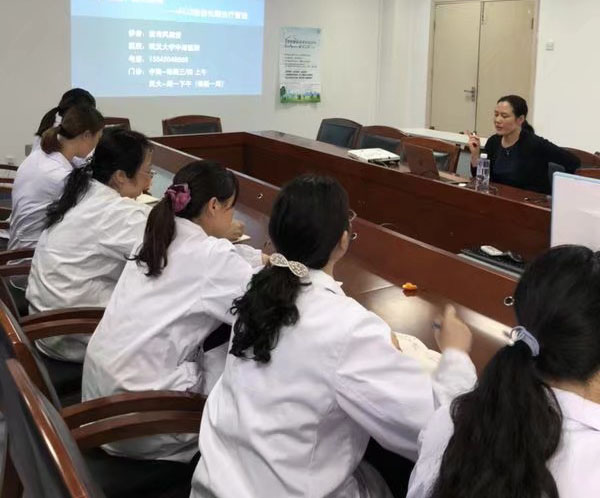 武汉大学中南医院童传凤教授在必赢官网讲学。校医院供图