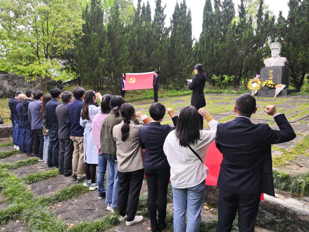 在黎化南将军石像前,讲解员饱含深情地讲述了黎化南将军的生平事迹,为大家还原了战火纷飞的革命岁月。支部党员重温入党誓词,并敬献鲜花、打扫墓地,表达了对革命先烈的崇高敬意与深切缅怀。