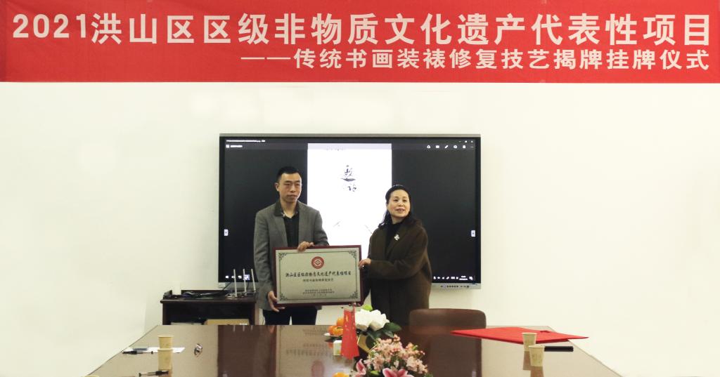 洪山区区级非物质文化遗产代表项目在必赢官网揭牌。黎倩琳 摄