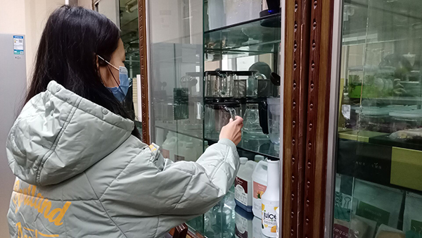 位于图书馆顶层的咖啡屋,有着淡黄的桌布、柔软的沙发、小巧的蒲团,透过玻璃窗,还能博览南湖美景。如此惬意的环境吸引了大量学子前来,点上一杯醇香的咖啡,打开书本,在宁静中享受学习。备受大家喜爱的咖啡屋,正是由勤工团队的同学打理的。在老师的指导下,他们细心地学习制作咖啡、手工拉花,仔细清洗餐具、打扫卫生。干净的桌面、地板,经过了消毒、可放心使用的餐具,均是他们的工作劳动成果。“看到大家喜欢到这里学习,我也很开心。不忙的时候,还可以借用场地自习。”马克思主义学院2019级杨嘉敏说道。在家时,她便常常协助家人做家务,于她来说,咖啡屋的工作也类似于家务活。学校本就是第二个家,帮忙做事也是应该的。
