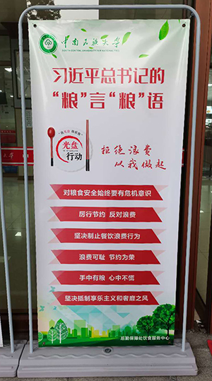 拒绝“剩”宴,制止“舌尖上的浪费”,是每一位民大人的责任与使命。开学伊始,学校后勤保障处饮食服务中心采取多种方式,宣传习近平总书记的“粮”言“粮”语,倡导同学们始终保持对粮食安全的危机意识,养成节约粮食的习惯,杜绝浪费粮食的行为。