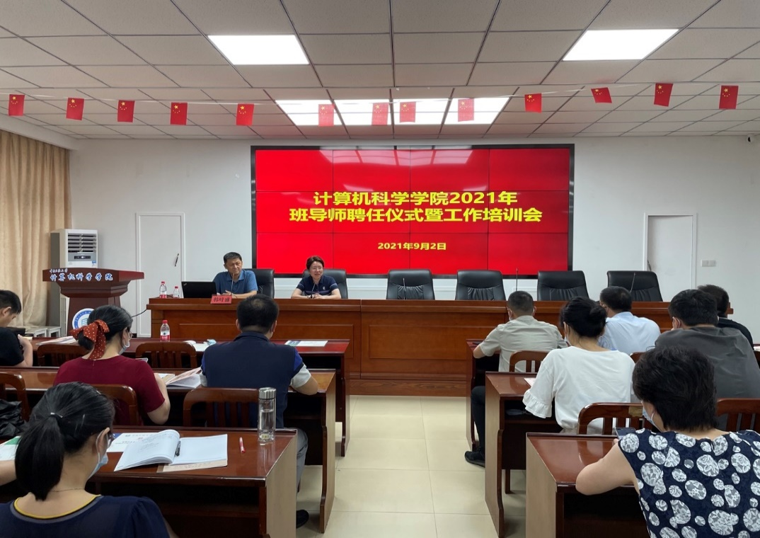 为加强思政工作队伍建设,完善“三全育人”工作体系,贯彻落实学校班导师队伍建设精神,9月2日,计科学院举行院班导师聘任仪式暨工作培训会。校党委常委、纪委书记韩叶盛,学院领导及全体班导师参加会议,会议由院长覃俊主持。