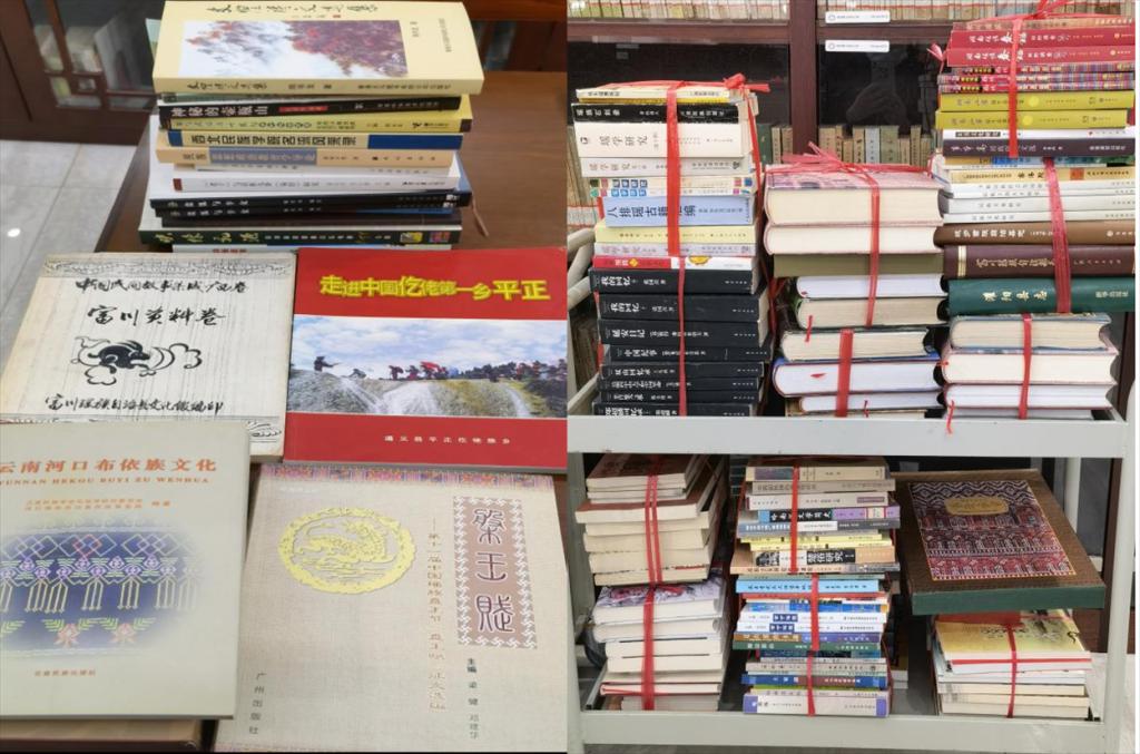 李庆福捐赠的这批图书,既有他多年来深入民族地区开展田野调查收集到的书籍,也有其个人专著,都是民族类论著、志书、内部资料和画册。其中一些是图书馆至今未入藏的,如《20世纪30年代内蒙古西部地区文学作品选》《弥勒彝族历史文化探源》《楚雄彝族自治州民族工作50年》《丹砂古县的文化记忆》《走进中国仡佬族第一乡平正》《中国民间故事集广西卷——富川资料卷》(油印本)等,颇为珍贵。