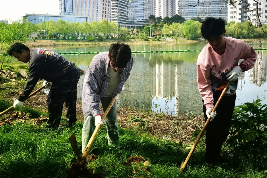 各年级同学各显神通,一展身手。2021级同学“以趣寻友”,组织了“棋牌益智”活动和“遍寻校园春光”短片拍摄。伴着淡淡的艾草清香,2020级同学手工制作青团,品尝风味小吃,体味传统风俗文化。网工2002班班导师杨波组织同学们来到南湖边绿草地,锄去杂草,洒下花种,共享田间劳作乐趣,期待盛夏繁花满地。2019级同学联合召开了草坪上“素质拓展,师生联谊”主题班会。“数字炸弹”“一字马接龙”“草地版休闲桌游”……老师与同学们默契配合,欢声笑语溢满了整个操场。软工1904班班导师吴立锋笑言:“我们的目标是走出宿舍、走向操场、走向阳光!”