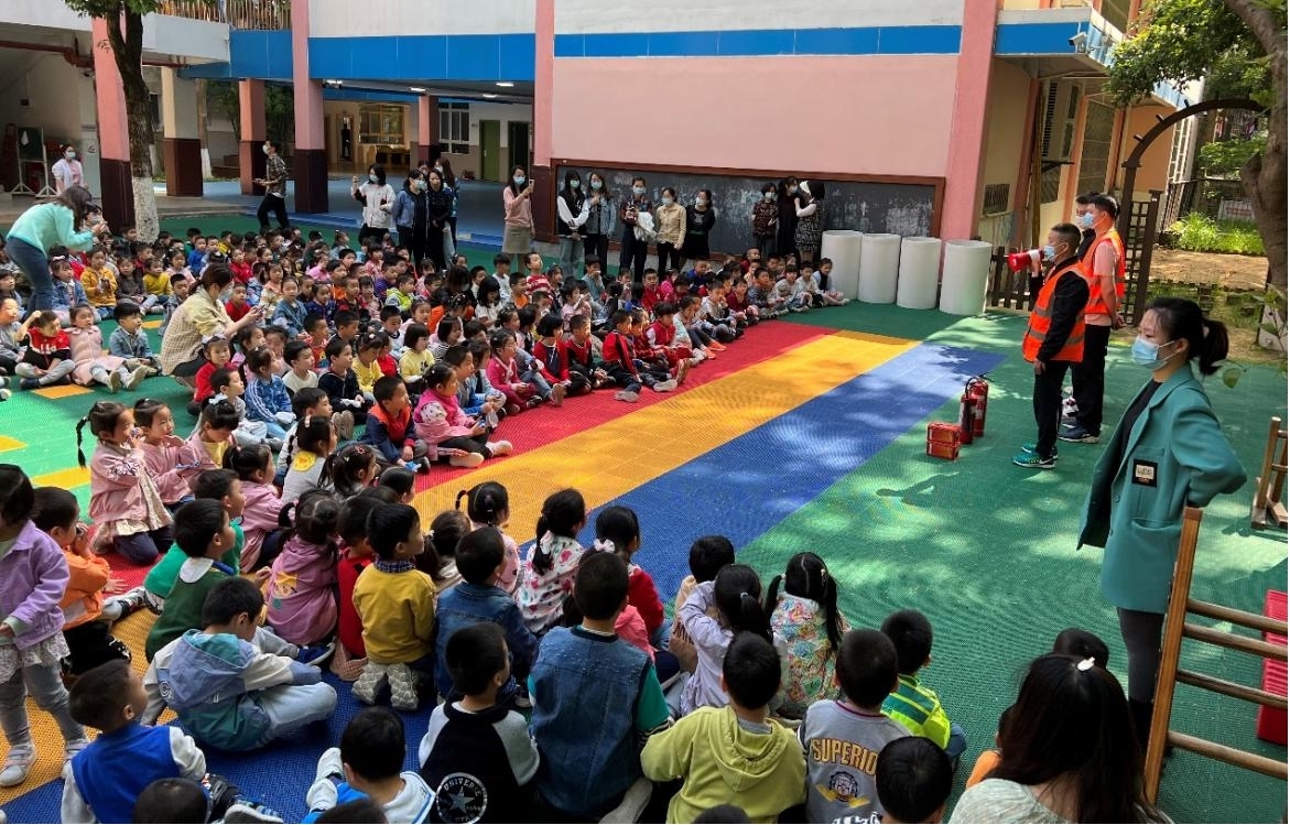 附属幼儿园与保卫处联合开展消防疏散演练活动
