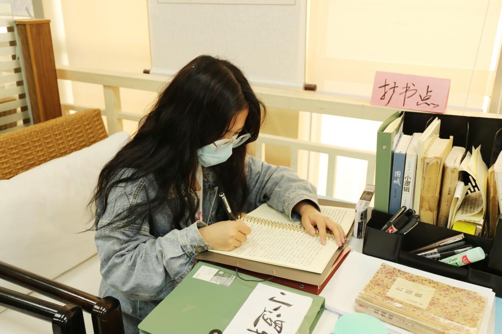 女书咖啡馆中的抄书活动。  龙静玲  摄