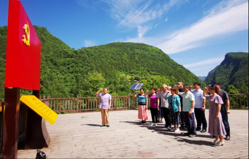 在调研期间,离退休工作处党委组织调研组全体党员重走“愚公路”和茶盐古道,现场学习“愚公支书”王光国不畏艰险带领村民绝壁筑路奔小康的先进事迹,感悟基层党员干部的奋斗初心。在愚公广场,全体党员列队整齐,面对党旗庄严宣誓,在巍巍大山的见证下重温入党誓词,砥砺初心使命。