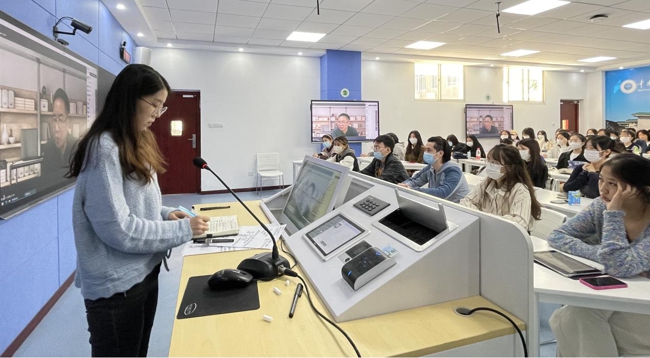 同学们主动连线唐教授,与老师积极互动。 蔡艺琳摄