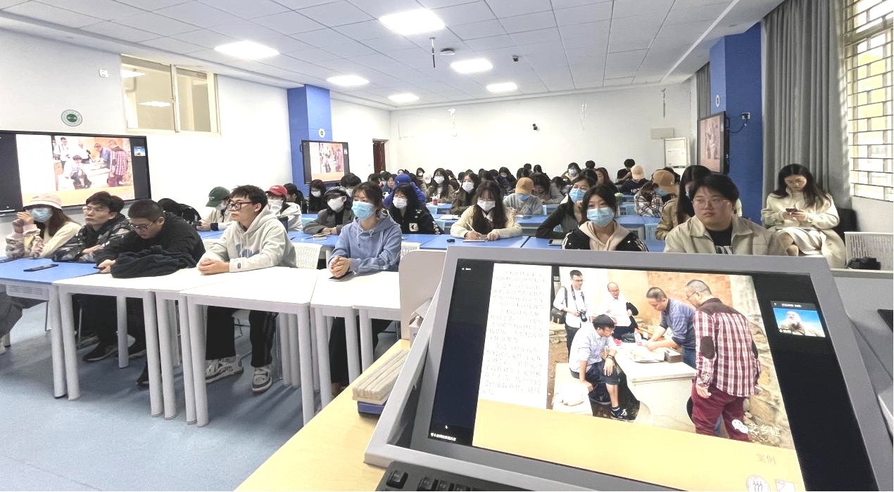 陈教授在课堂展示艺术乡建的实践案例。何子怡摄