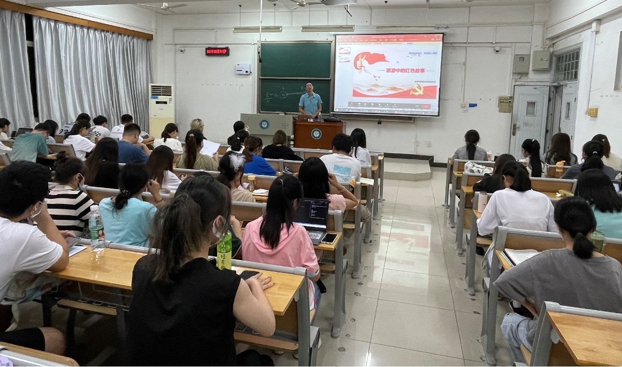 为深入贯彻习近平总书记关于用好红色资源、赓续红色血脉的重要讲话精神,引导学生继承和发扬爱国主义精神,管理学院旅游管理教工党支部探索将专业知识与思政教育相结合,组织旅游管理专业全体教师结合自己知识背景于2022年秋季开设了面向全校的公共选修课《旅游中的红色故事》。