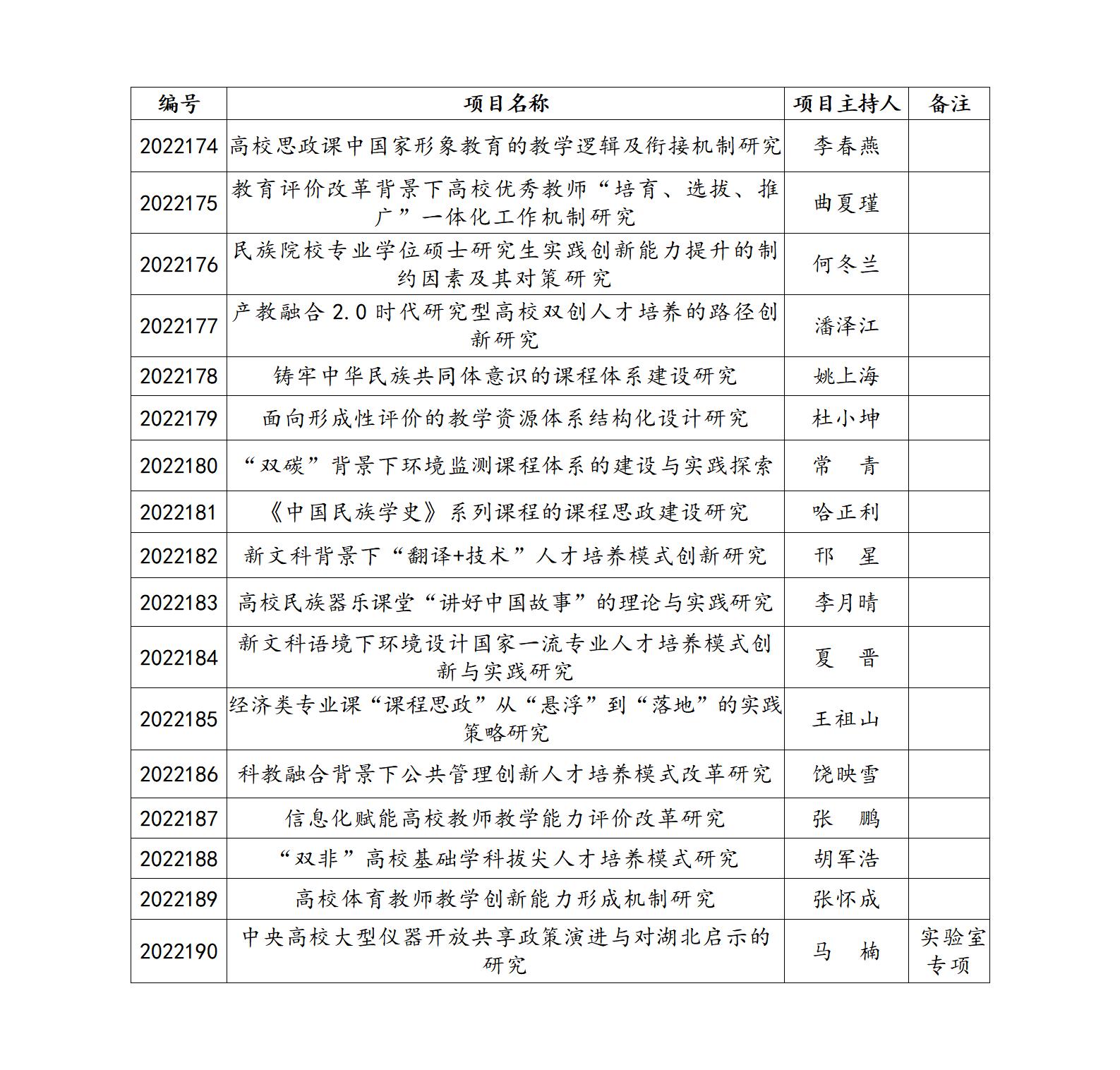 2月20日,湖北省教育厅公布了2022年湖北高校省级教学研究项目,必赢官网17项项目获批立项(详见下表)。