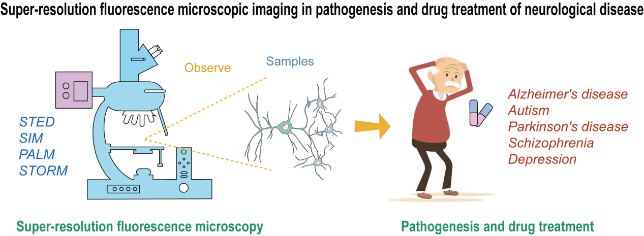 文章概述了超分辨荧光显微镜成像技术在神经疾病发病机制和药物治疗中的作用和发展前景,主要介绍了几种经典的超分辨荧光显微镜成像原理[STED、PALM、(S)SIM、STORM],并比较了其优缺点,阐述了它们在神经系统疾病研究中的应用。超分辨荧光显微镜的应用仍处于发展阶段,阳小飞教授团队总结了不同超分辨荧光显微镜的应用优势及局限性,针对超分辨荧光显微镜在神经疾病和相关药物研发中的应用进行了归纳分析,并对超分辨显微镜在这一领域未来的研发和应用方向进行了展望,为神经疾病的发病机制研究和药物开发提供了依据。