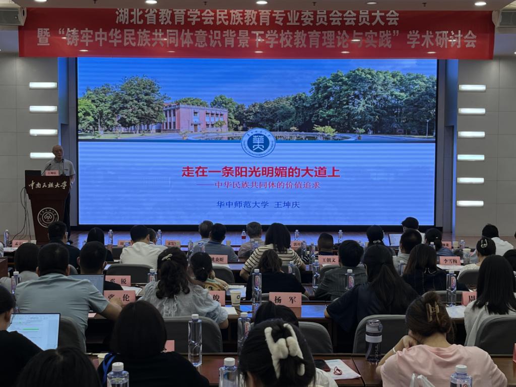 大会围绕“铸牢中华民族共同体意识背景下学校教育理论与实践”问题展开学术研讨。全国民族教育专业委员会首任会长、中央民族大学滕星教授,华中师范大学王坤庆教授分别以《倡导多元文化整合教育理论铸牢中华民族共同体意识》和《走在一条阳光明媚的大道上——中华民族共同体的价值追求》为主题作主旨报告。武汉西藏中学、宜昌市长阳实验小学教育集团、武汉江夏东湖路学校和武汉回民小学等中小学校长在会上分享了学校将铸牢中华民族共同体意识融入学校教育教学的成效。教育学院康翠萍教授和汪丞教授在会上分别作了专题报告。