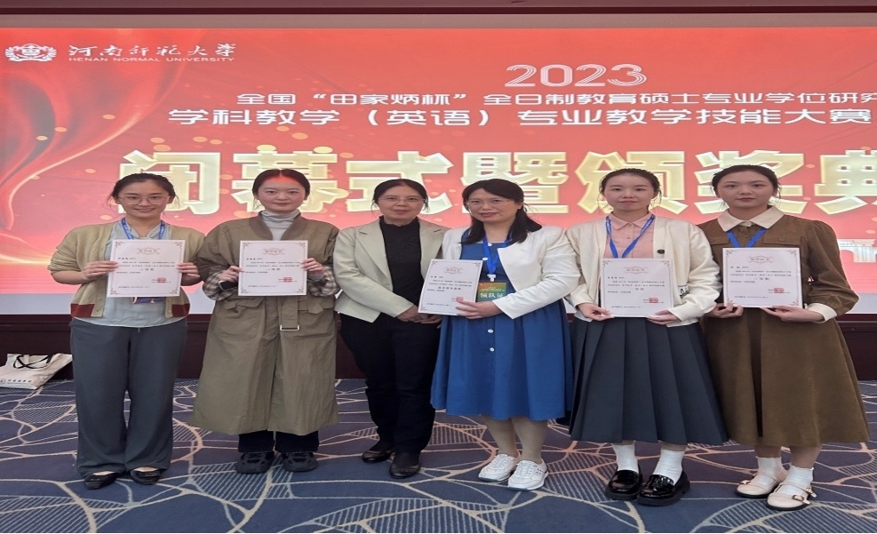 10月20-22日,2023年全国“田家炳杯”全日制教育硕士专业学位研究生学科教学(英语)专业教学技能大赛决赛在河南师范大学举行。来自全国86所院校的230名选手参加决赛,必赢官网外语学院4名参赛研究生取得了好的成绩。其中,吴秀祯同学荣获二等奖,罗娴、秦晓雪、严若楠同学荣获三等奖,外语学院舒静老师获“优秀指导教师奖”。