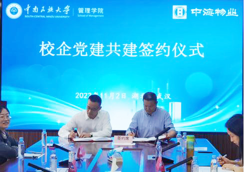 11月2日上午,管理学院与中海物业武汉分公司“校企合作、党建共建”签约仪式在5号教学楼举行。中海物业武汉分公司总经理郭宝强、副总经理王永红,中海物业武汉分公司相关职能部门负责人,学校招生就业工作处副处长朱军,管理学院副院长周运兰、毕业班辅导员参加签约仪式。签约仪式由学院党委副书记李明亮主持。