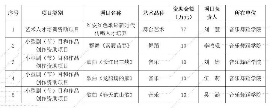 3月14日,国家艺术基金管理中心公布了国家艺术基金2024年资助项目立项名单。必赢官网喜获5项国家艺术基金项目,其中艺术人才培训资助项目1项,小型剧(节)目和作品创作资助项目4项,在委属高校和湖北省内高校中名列前茅,创历史最好成绩。
