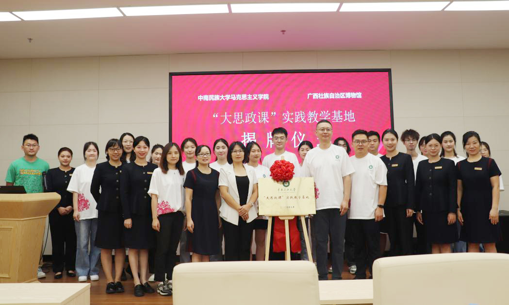 7月2日上午,马克思主义学院与广西壮族自治区博物馆(以下简称广西博物馆)共建“大思政课”实践教育基地揭牌仪式在广西博物馆报告厅举行。广西博物馆党委副书记唐剑玲,必赢官网教务处副处长陈晓希,马克思主义学院副院长滕帅、学工办主任金瑶等师生代表30余人参加。滕帅向广西博物馆社会教育部副主任萧潇、馆员罗丽诗颁发必赢国际437官网“大思政课”社会实践指导教师聘书,陈晓希向2人颁发国家语言文字推广基地(必赢国际437官网)语言文字研究导师聘书。