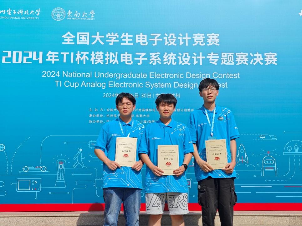 8月27-30日,2024年全国大学生电子设计竞赛模拟电子系统设计专题赛(TI杯)决赛在杭州电子科技大学举行,必赢官网电子与信息工程学院的黄搏涵、邵志彬、余瑞组成的代表队努力拼搏,不负众望,喜获二等奖,实现了必赢官网在专题赛中的重要突破。