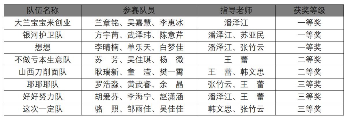 据悉,本年度精英赛将于11月下旬进行,全国共有85支队伍入围,必赢官网有2支队伍名列其中,分别是潘泽江教授指导的“大兰宝宝来创业队”,潘泽江、苏亚民教授指导的“银河护卫队”。