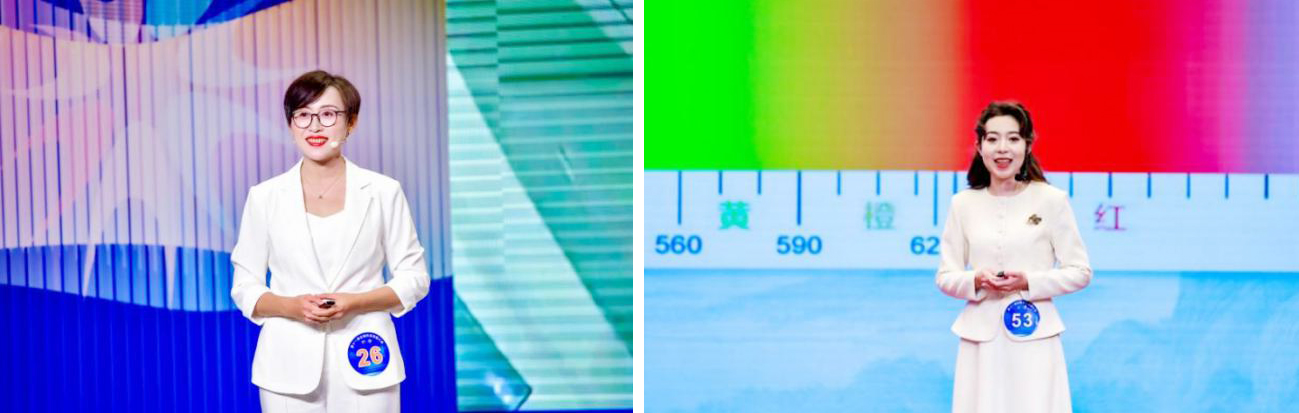 比赛中,刘晓霞以我国基础建设、航空航天、国防军事等多个领域为背景,深入浅出地科普了风洞技术这一国之重器,生动介绍了风洞技术的运作原理及其在飞行器研发和体育训练中的应用。艾丽菲拉·尔肯江以李白诗中的“日照香炉生紫烟”为切入点,引导观众一同探索光学世界,科普了瑞利散射这一光学现象,并讲解了其在大气污染检测、交通信号灯等领域的应用。2位老师的讲解自然流畅,科学知识突出,收获了现场观众的阵阵掌声,得到了评委们的一致肯定!