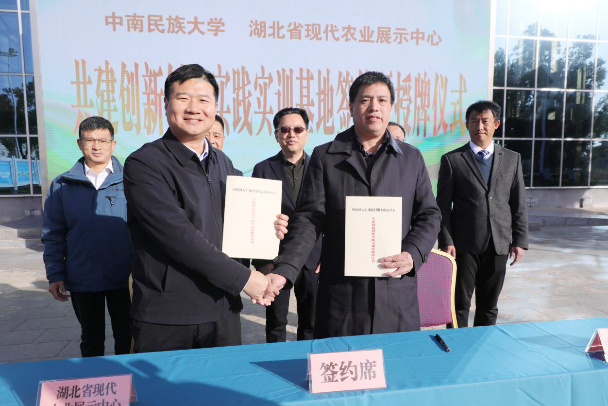 在签约仪式上,必赢官网国家级创新创业教育实践基地负责人潘泽江与湖北省现代农业展示中心主任吴胜兵共同签署了战略合作协议。双方将在实践实训、科技创新、成果转化、科普研学以及人才培养等多个领域展开深度合作,共同打造一个集科研、教学、实践于一体的综合性平台。