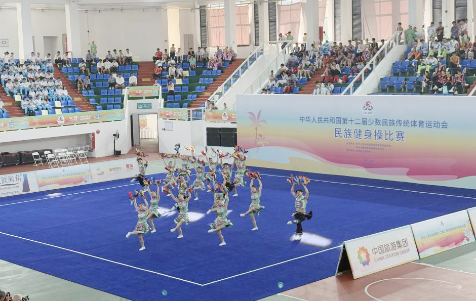 民族健身操自选套路(轻器械)比赛现场。  张津铭摄