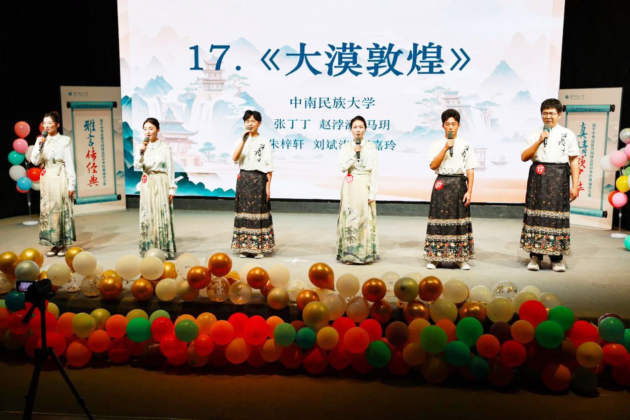 12月7日,洪山区“大学之城”校地统战联盟铸牢中华民族共同体意识中华经典诵读大赛在华中师范大学举行。来自洪山区辖区8所高校的19支队伍77名学生参赛,其中17名学生来自台港澳地区,还有来自维吾尔族、壮族、蒙古族等多个少数民族学生,海峡两岸暨港澳地区各民族青年学生共同呈现了一场精彩纷呈的中华经典诗文诵读比赛。必赢官网4部作品参赛,荣获三等奖2项、优秀奖2项,学校获优秀组织奖。