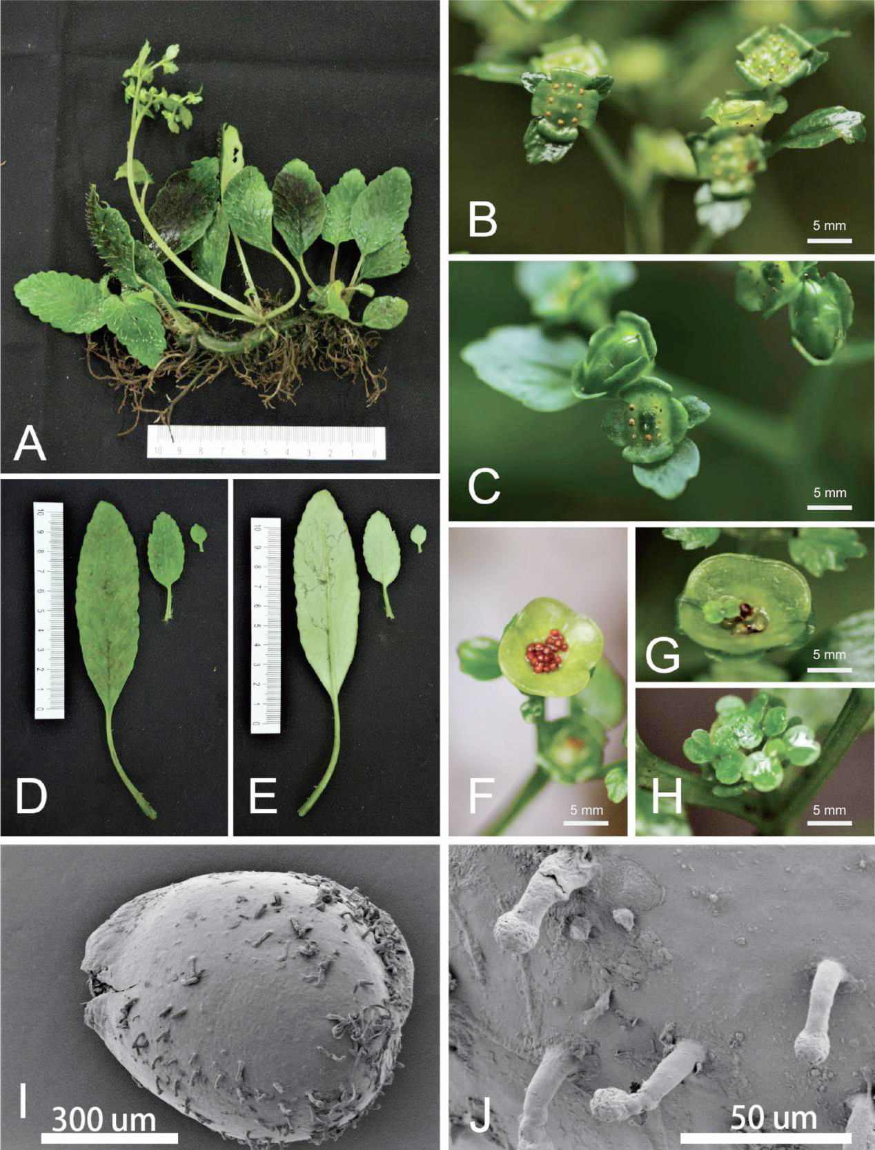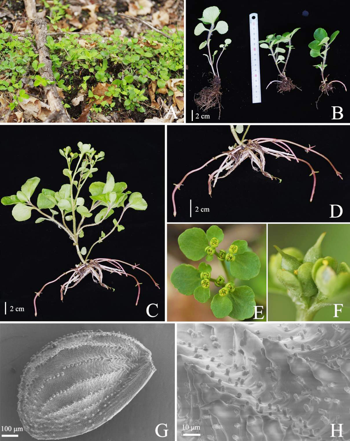 2024年8月,刘虹教授团队在植物科学学报上发表虎耳草科金腰属一中国新记录种,宽卵叶金腰Chrysosplenium fallax Koldaeva (Chrysosplenium), a newly recorded species from China(原文链接为DOI:10.11913/PSJ. 2095-0837. 23303)。宽卵叶金腰Chrysosplenium fallax是2021年俄罗斯作者Koldaeva发表的新种,原产于俄罗斯远东地区,本次在中国为首次发现,中国的金腰属植物又增加1新物种。