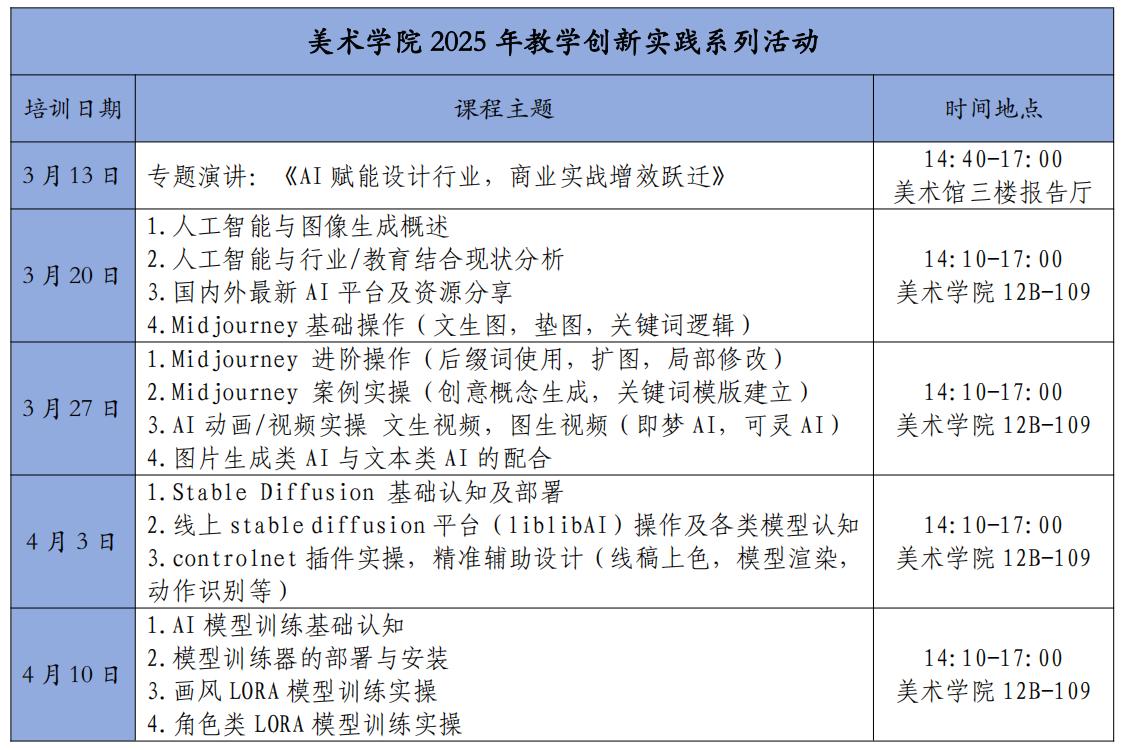 本次系列活动课程安排。 美术学院供图