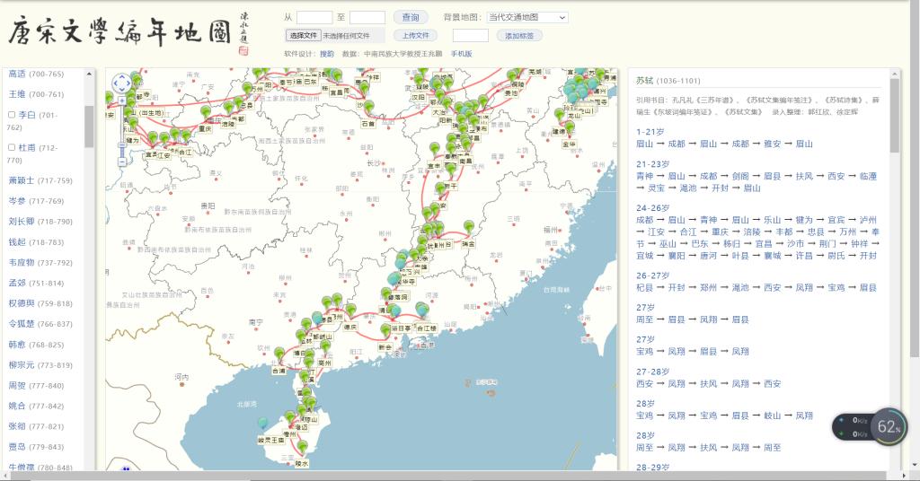 《唐宋文学编年地图》软件截图。 实验教学与实验室管理中心供图