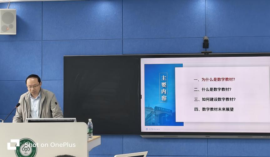第一场培训会邀请高等教育出版社数字教材出版中心副主任时阳作《数字教材建设的探索与实践》主题报告。他围绕国内外数字教材发展现状,数字教材相关政策与行业背景,高教社关于数字教材建设的探索与实践,以及数字教材的未来前景等4个方面进行了全面而深入的讲解。