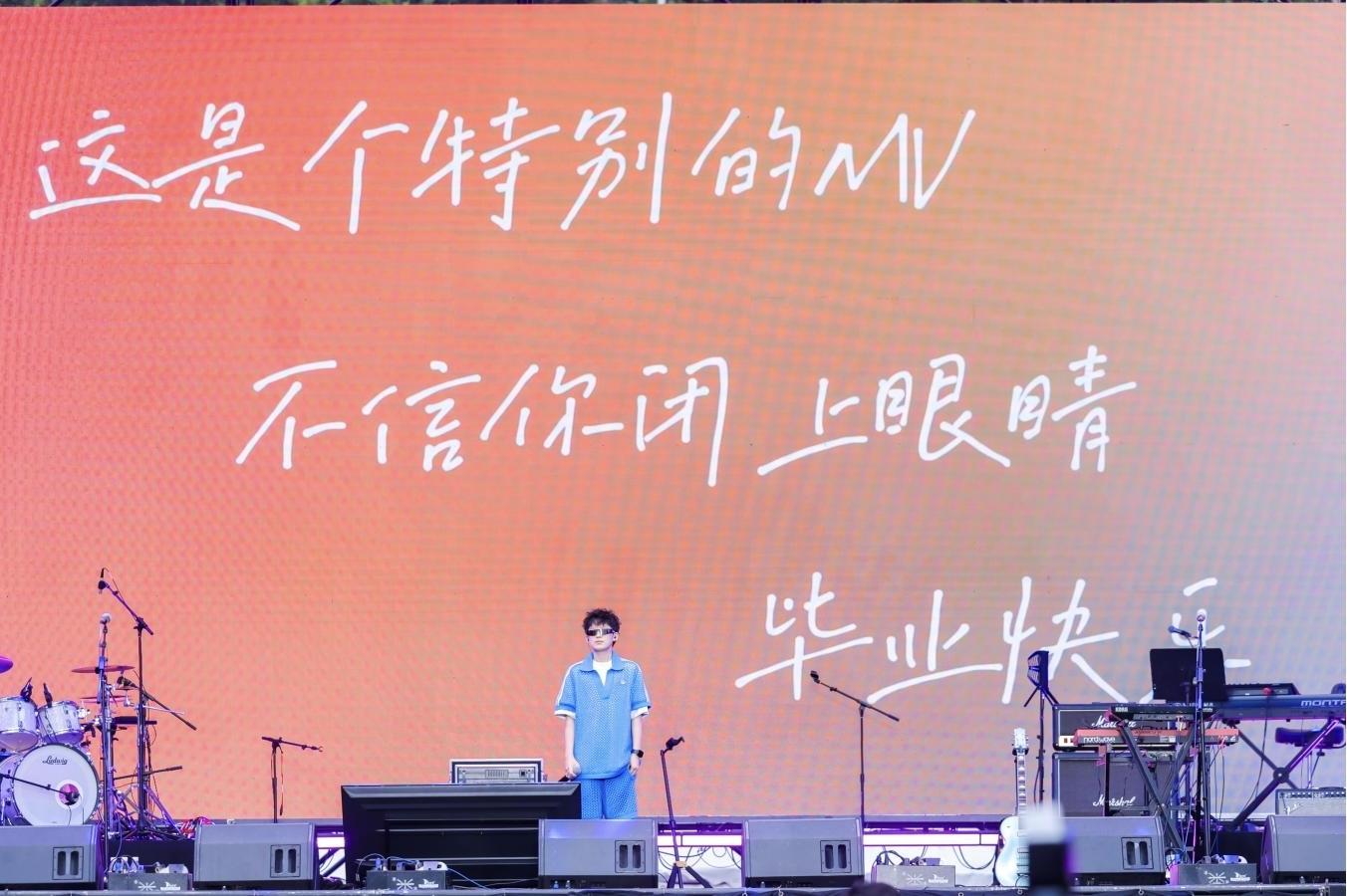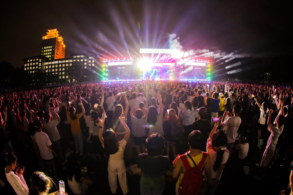 夜幕降临,各具特色的音乐表演,屡次将现场气氛推向高潮:沉默橙乐队演出的贝斯声点燃了音乐节的第一个沸点;歌手叶里的吟唱道尽时光眷恋;新生代唱作人苏勋伦清新的曲风恰似青春絮语;备受欢迎的歌手王靖雯以极具故事感的声线唱出“从前你穿越风雨都会仓促见一面”等动人金句,引燃全场大合唱,为毕业季增添了难忘的浪漫回忆;丢火车乐队压轴登台,用一首《火车日记》将整晚的热浪推向顶点!在这个不同寻常的夏夜,歌声穿透夜空,深深烙印在每个人的记忆深处,成为青春最闪亮的注脚。