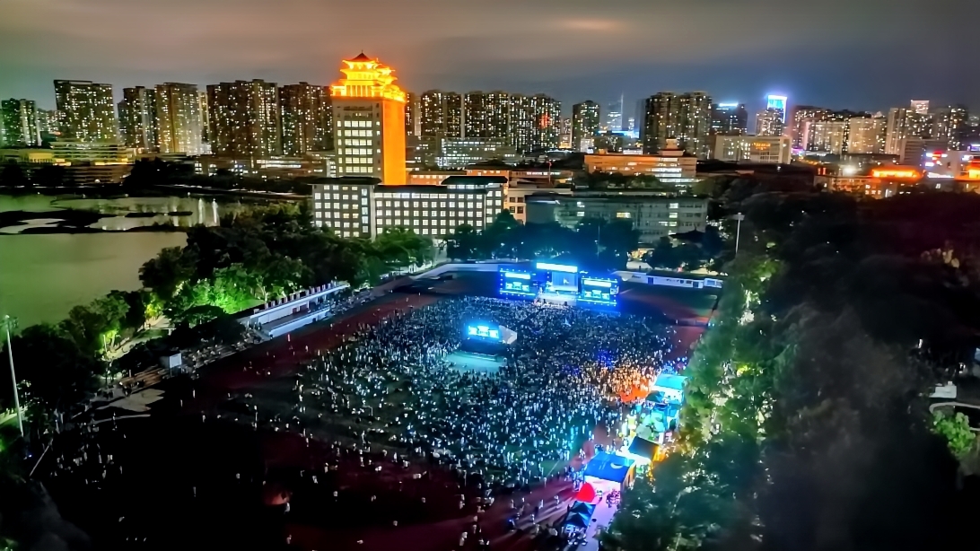 夜幕下“再见民大”户外音乐节现场。 校团委供图