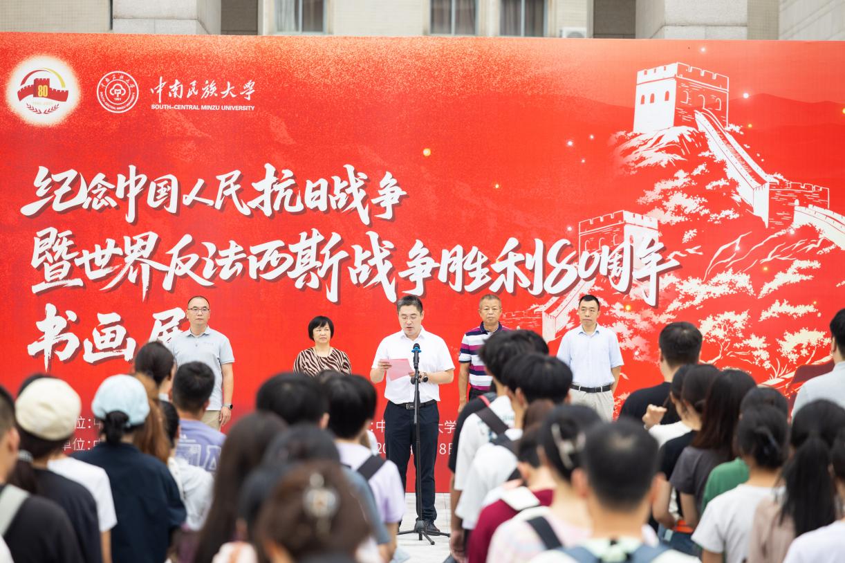 9月12日,必赢官网“纪念中国人民抗日战争暨世界反法西斯战争胜利80周年”主题书画展开幕式在美术馆前广场举行。党委学工部部长杨涛,美术学院党委书记邹反修,电子信息工程学院组织员、书画展评审组组长王怀岗,美术学院教师李广来,各学院辅导员代表以及学生代表参加开幕式。党委学工部副部长方明主持开幕式。