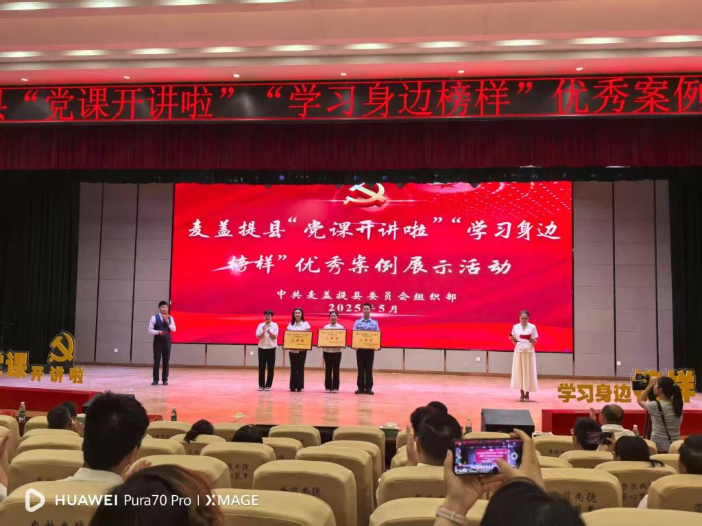 向莉蓉参加麦盖提县“党课开讲啦”“学习身边优秀案例”讲党课活动并获得三等奖。