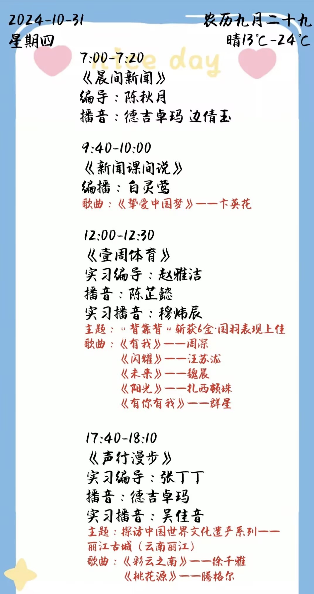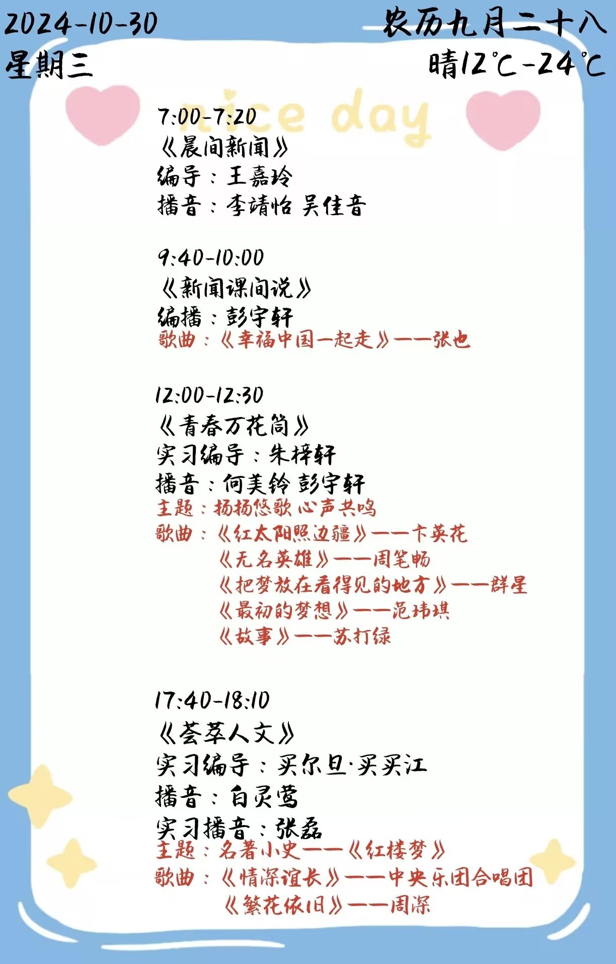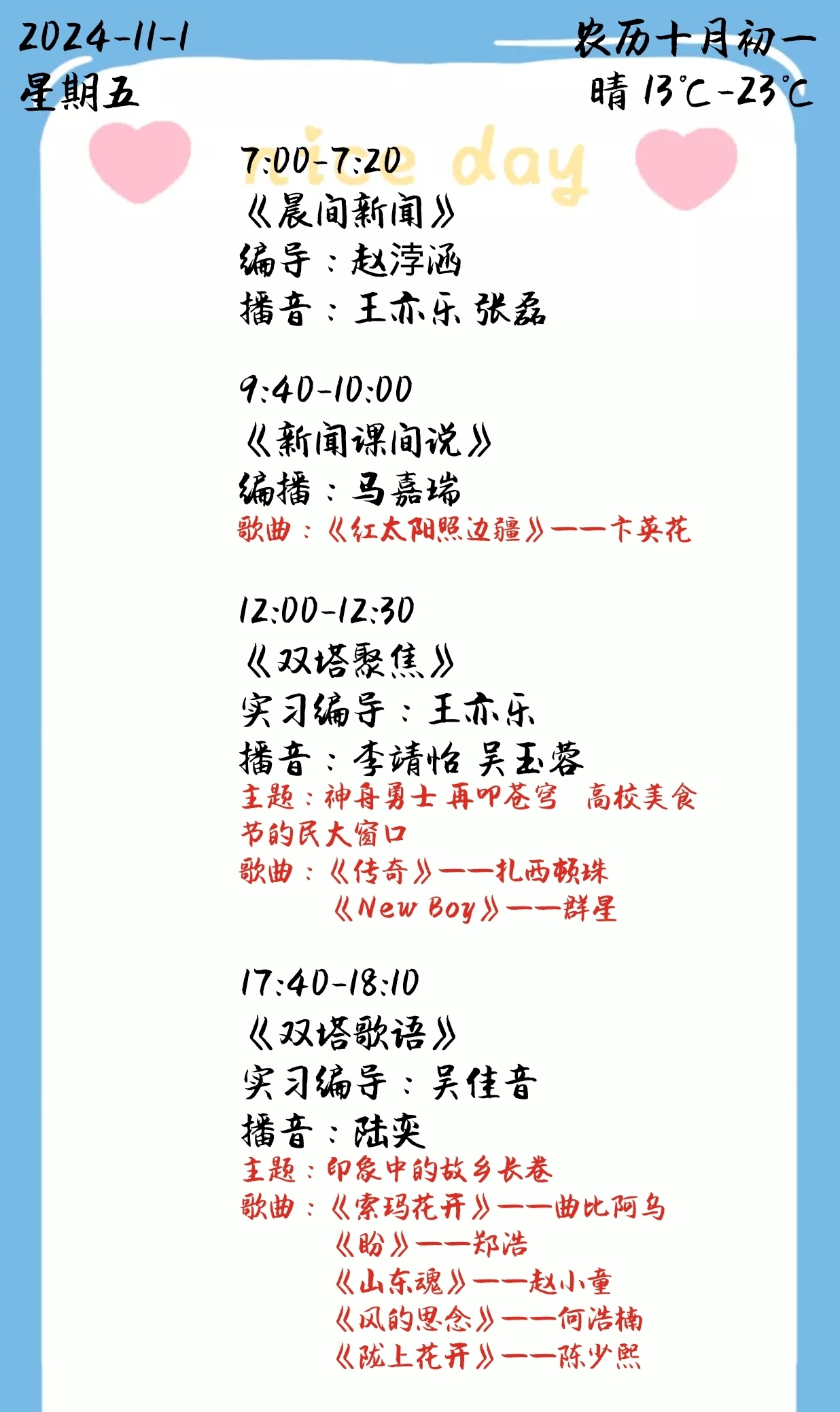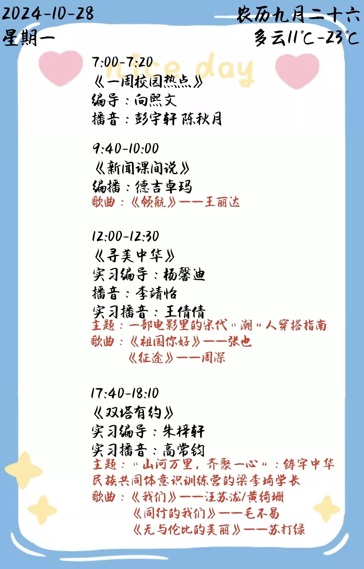 上一篇: 双塔之声2024年第二学期第10周节目单(2024.11.4-11.8)