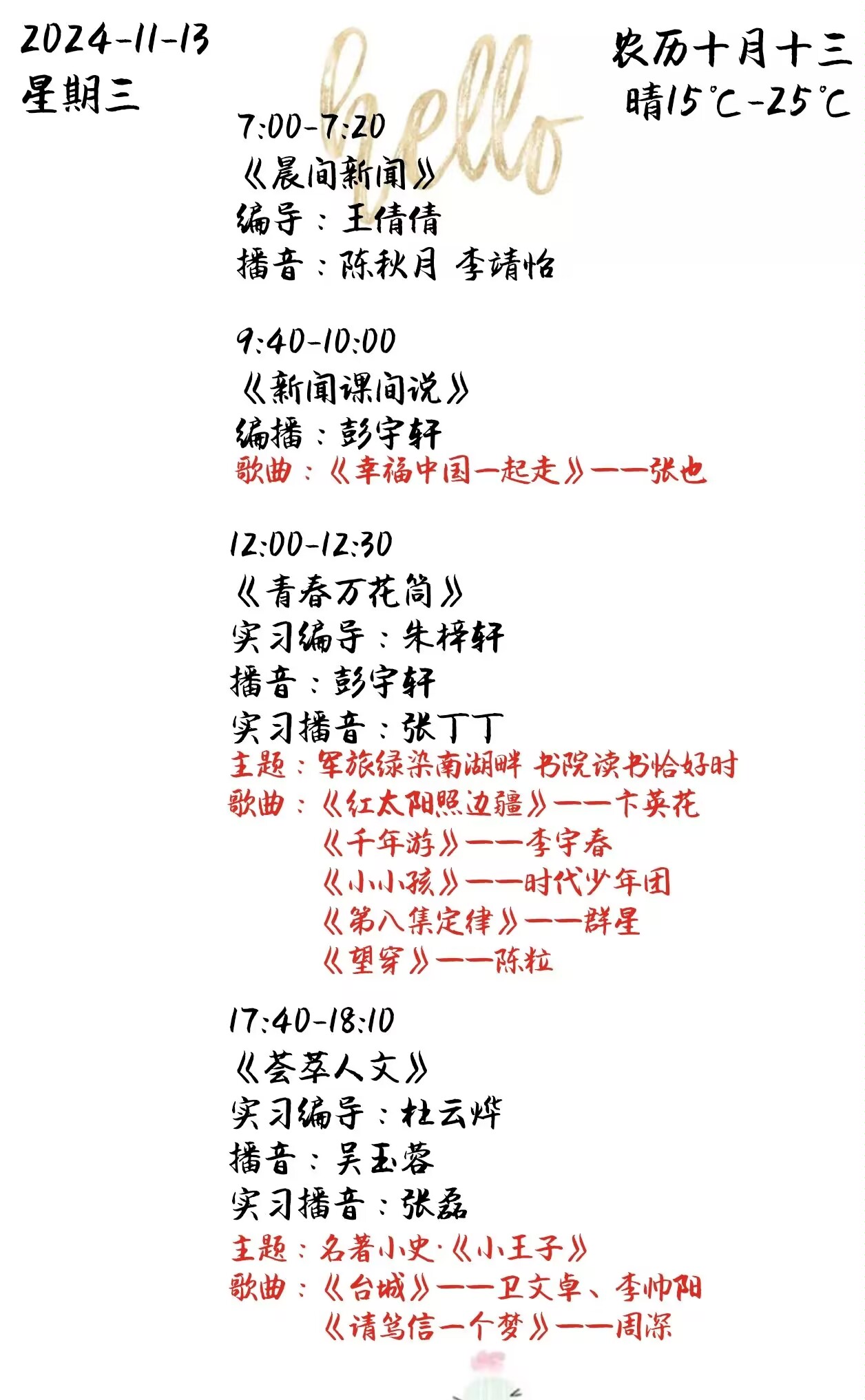 上一篇: 双塔之声2024年第二学期第12周节目单(2024.11.18-11.22)
