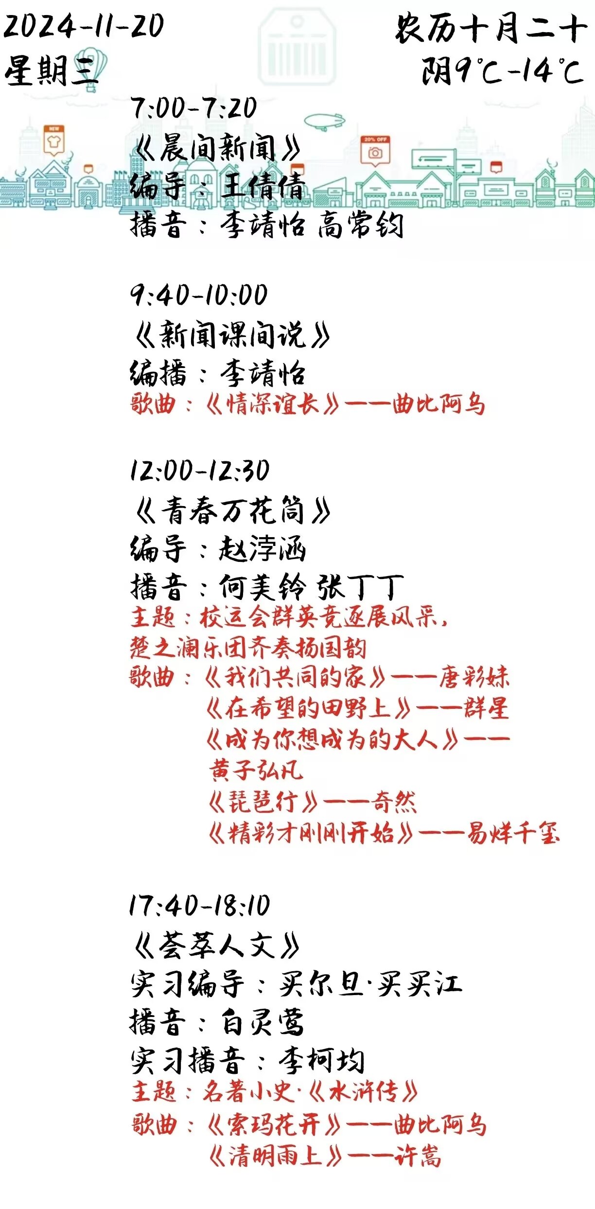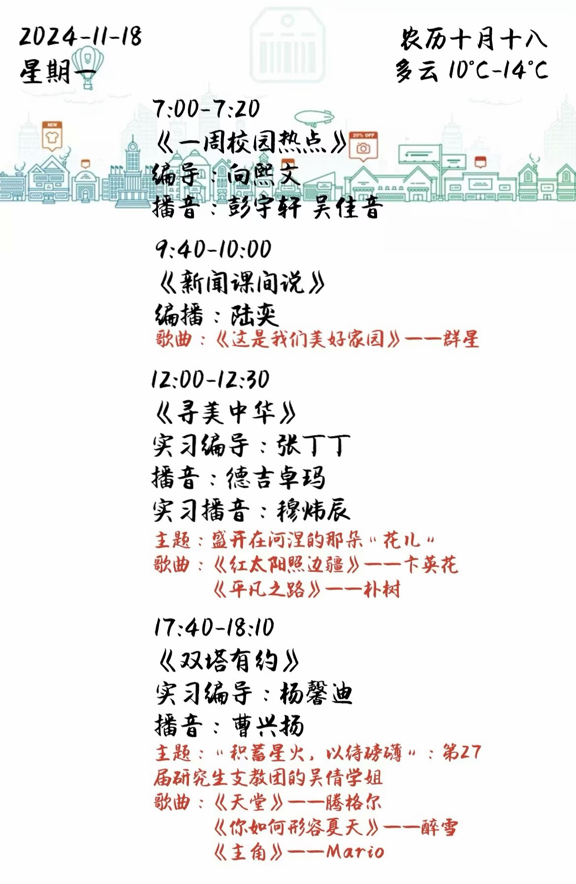 下一篇: 双塔之声2024年第二学期第11周节目单(2024.11.11-11.15)
