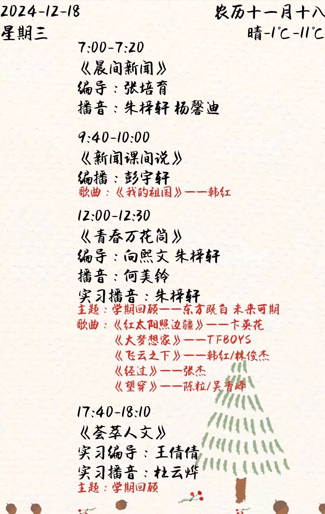上一篇:双塔之声2025年第一学期第1周节目单(2025.2.24-2.28)