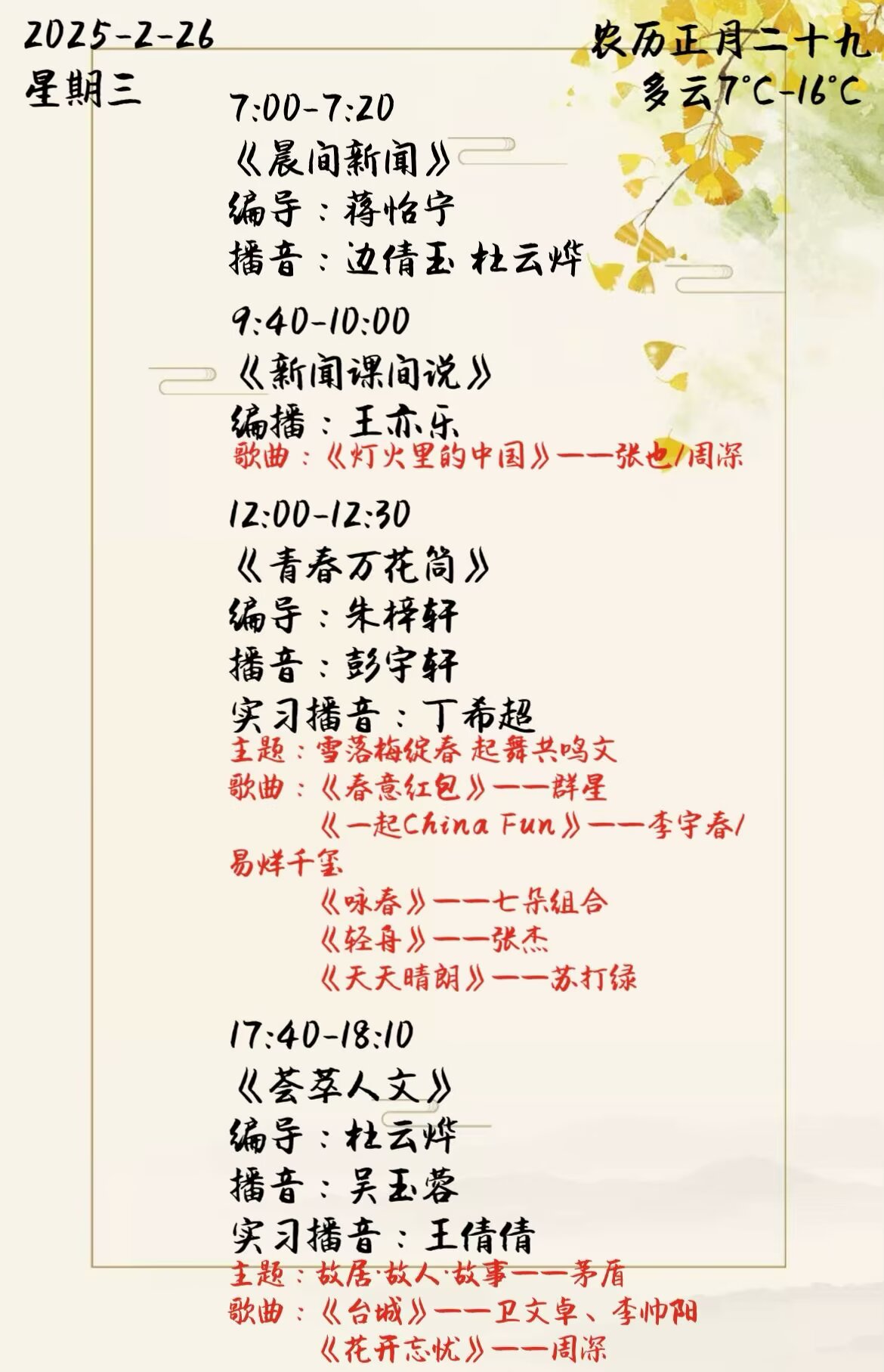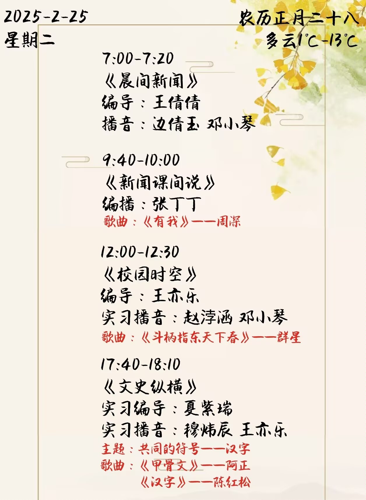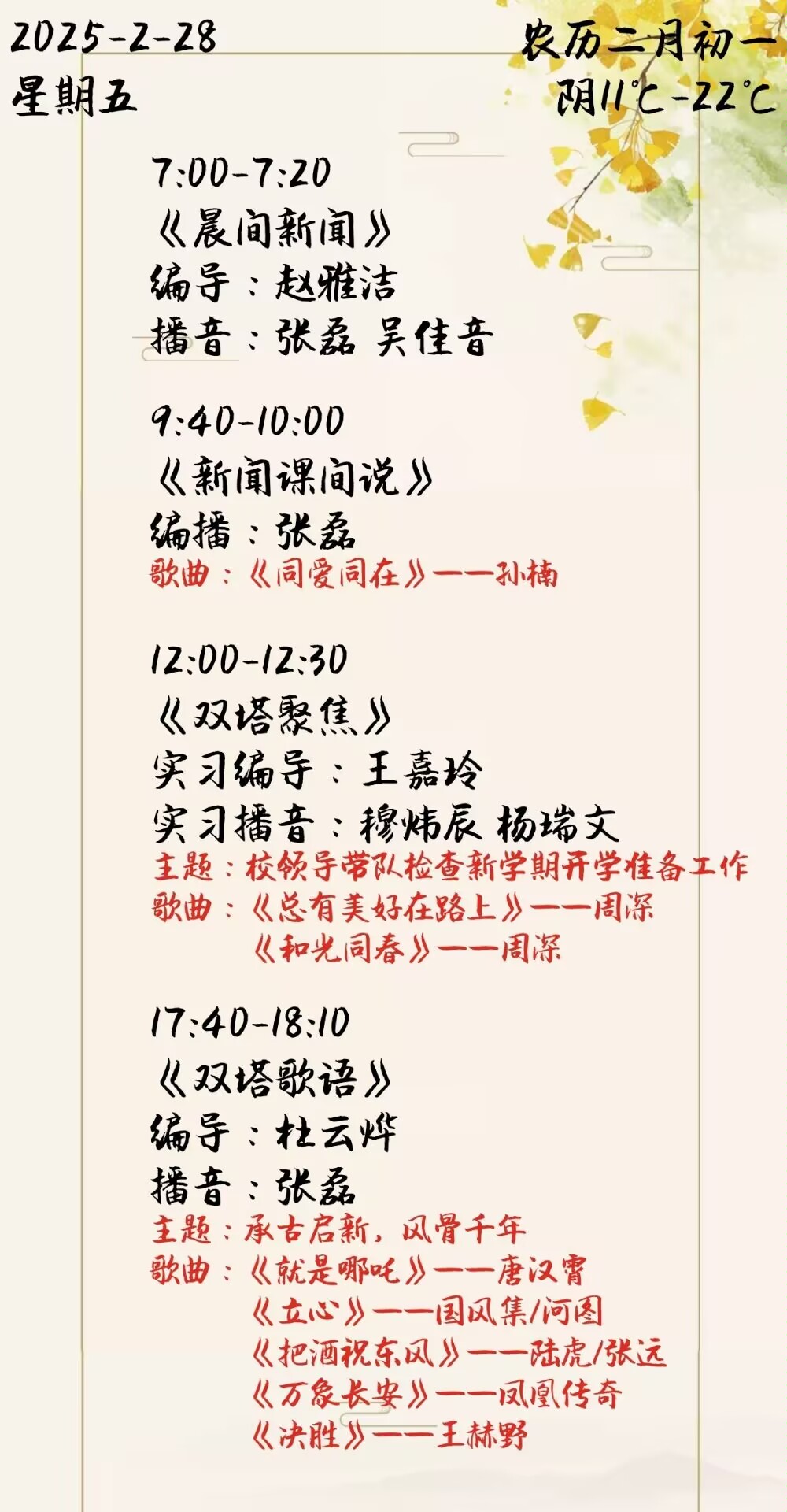 上一篇: 双塔之声2025年第一学期第2周节目单(2025.3.3-3.7)