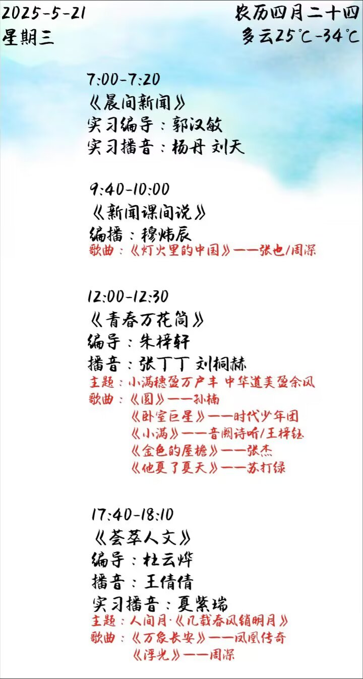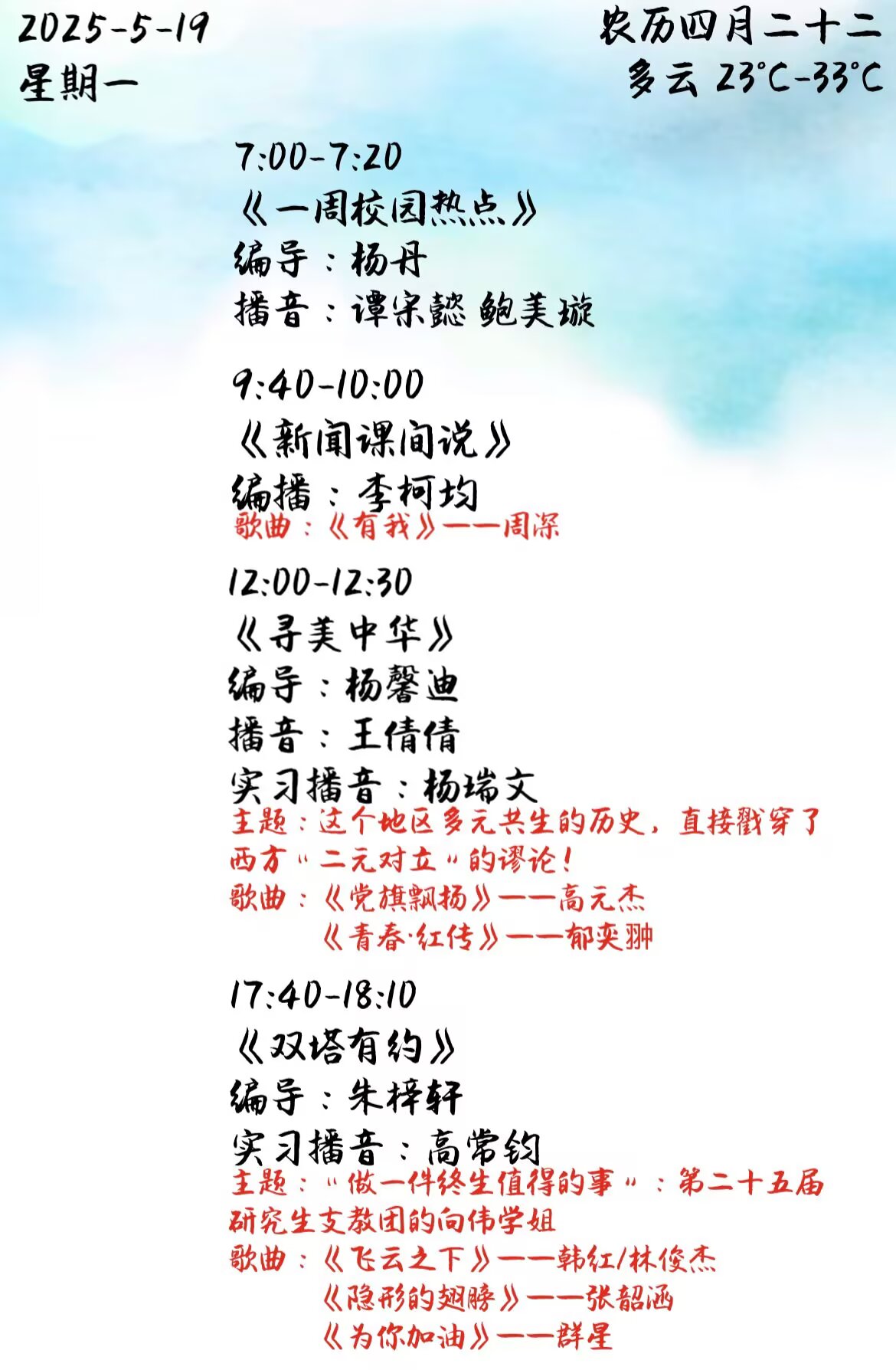 下一篇: 双塔之声2025年第一学期第12周节目单(2025.5.12-5.16)