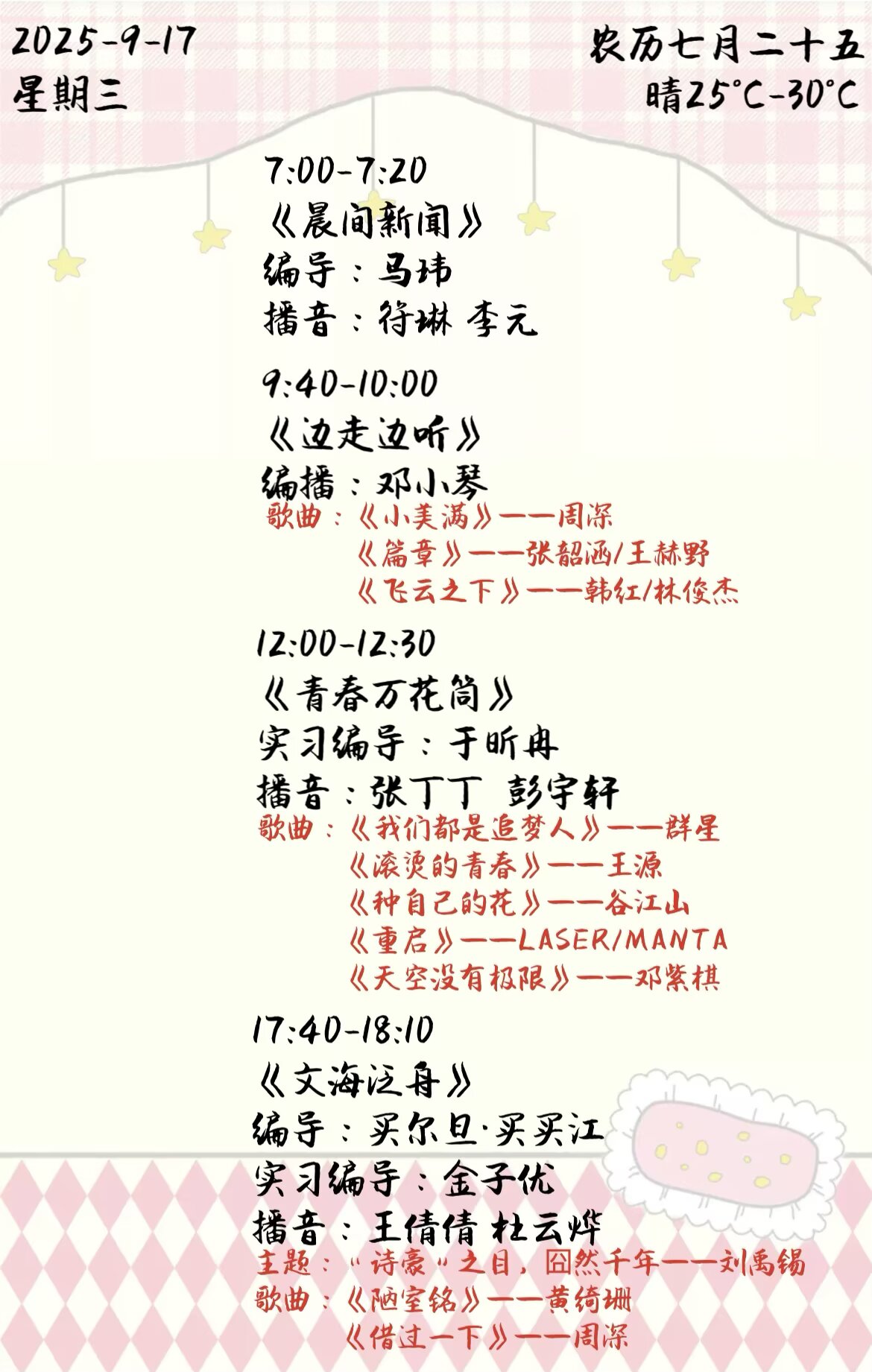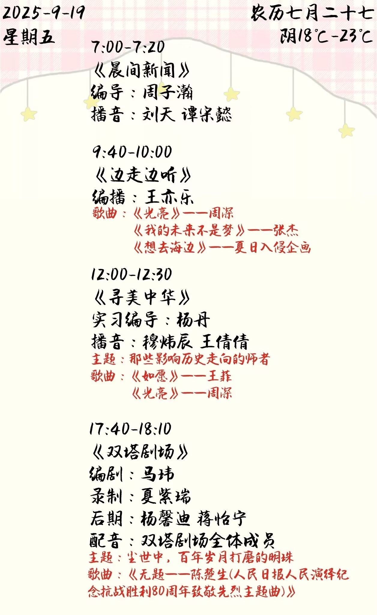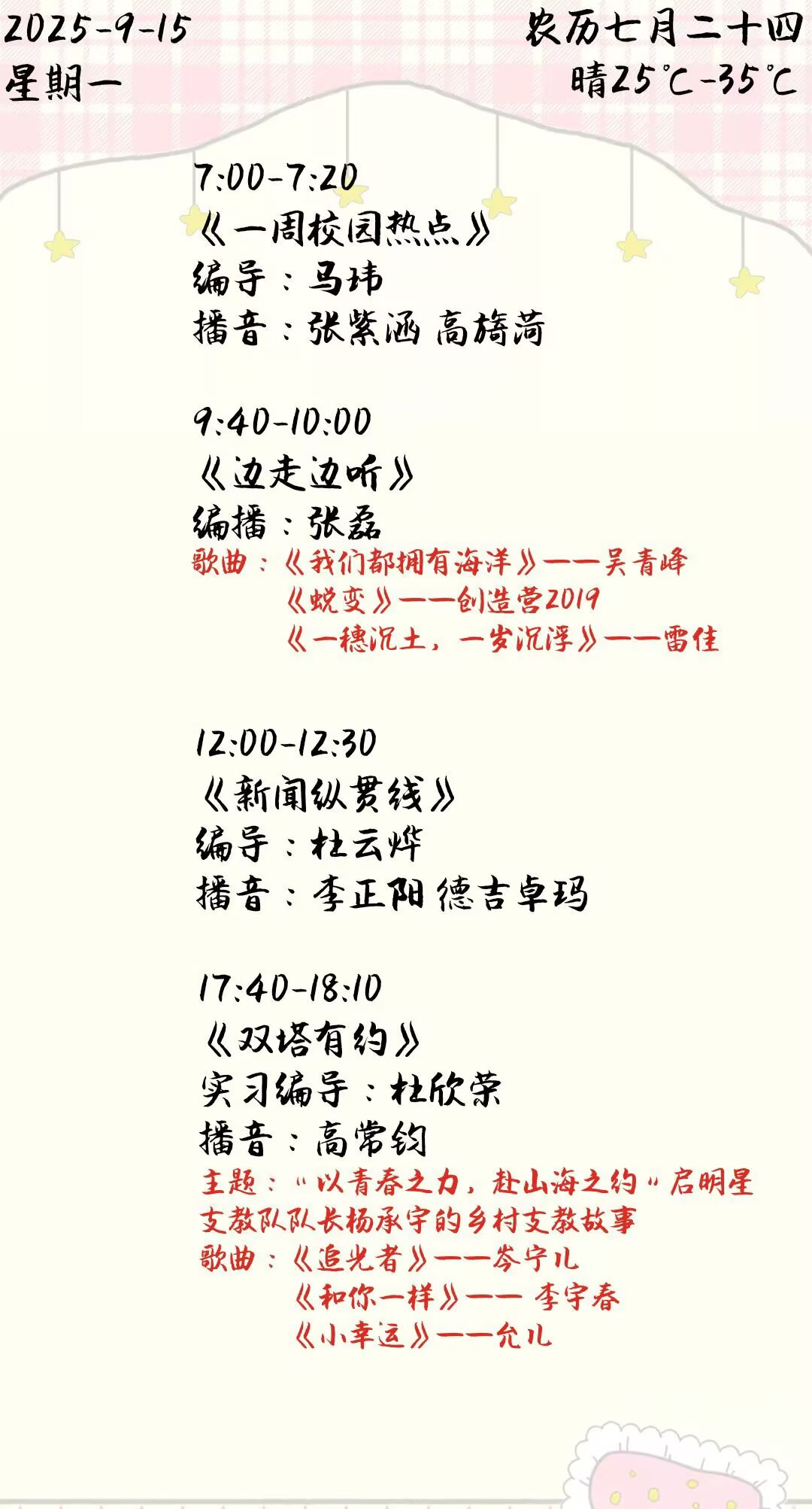 下一篇:双塔之声2025年第二学期第1周节目单(2025.9.8-9.12)