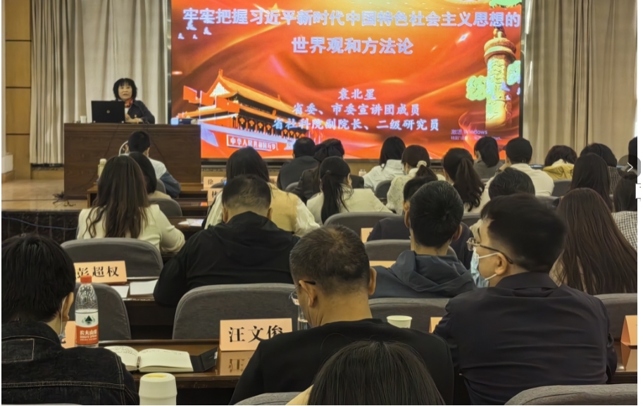 袁北星研究员从“两个行”“两个结合”“六个坚持”3个方面,将中华传统文化精髓与习近平新时代中国特色社会主义思想紧密结合,紧扣工作、生活中的实际案例,引经据典,深入浅出地解读了习近平新时代中国特色社会主义思想的历史逻辑、理论逻辑和实践逻辑,深刻分析了中国共产党坚定信仰信念、把握历史主动的根本所在,深入剖析了党的创新理论的思想精髓。