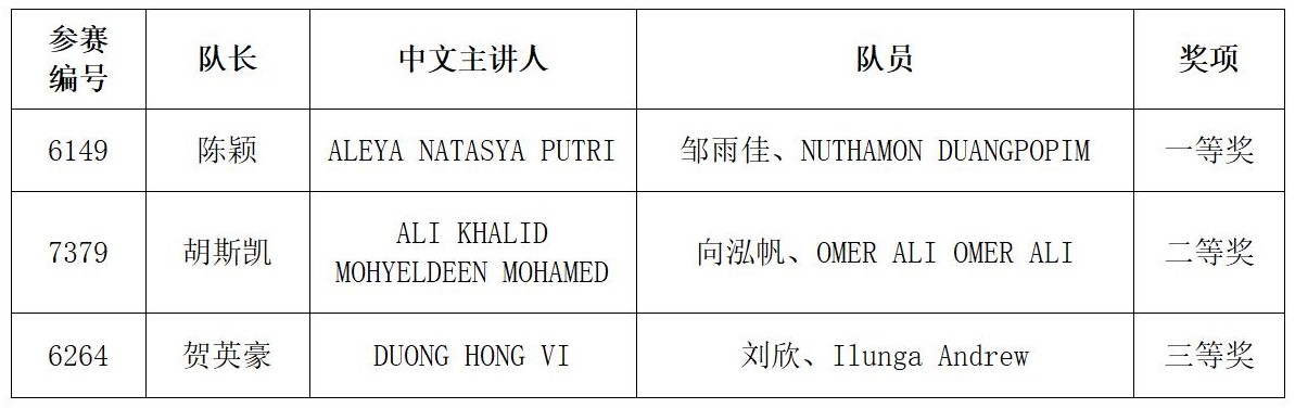 据悉,该项赛事自今年2月启动以来,国际教育学院、经济学院精心组织指导教师、学生参赛,从队伍组建、作品选题、内容打磨到讲解演练、模拟答辩,团队师生成员积极协作、奋力备赛。来自印度尼西亚的ALEYA NATASYA PUTRI在获奖后高兴地说道:“通过参加这次比赛,我收获了很多新的知识和非常宝贵的经验!将来,我会更努力学习,提高自己的水平。”国际合作与交流处负责人表示,本次比赛不仅让中外学生增长了跨专业知识学习能力,也让他们在团队合作中提升了跨文化交流能力,下一步,国际处将从专业竞赛等角度,进一步探索提升学生国际理解、国际视野、国际沟通能力的路径和方法,助力学校国际化人才培养。