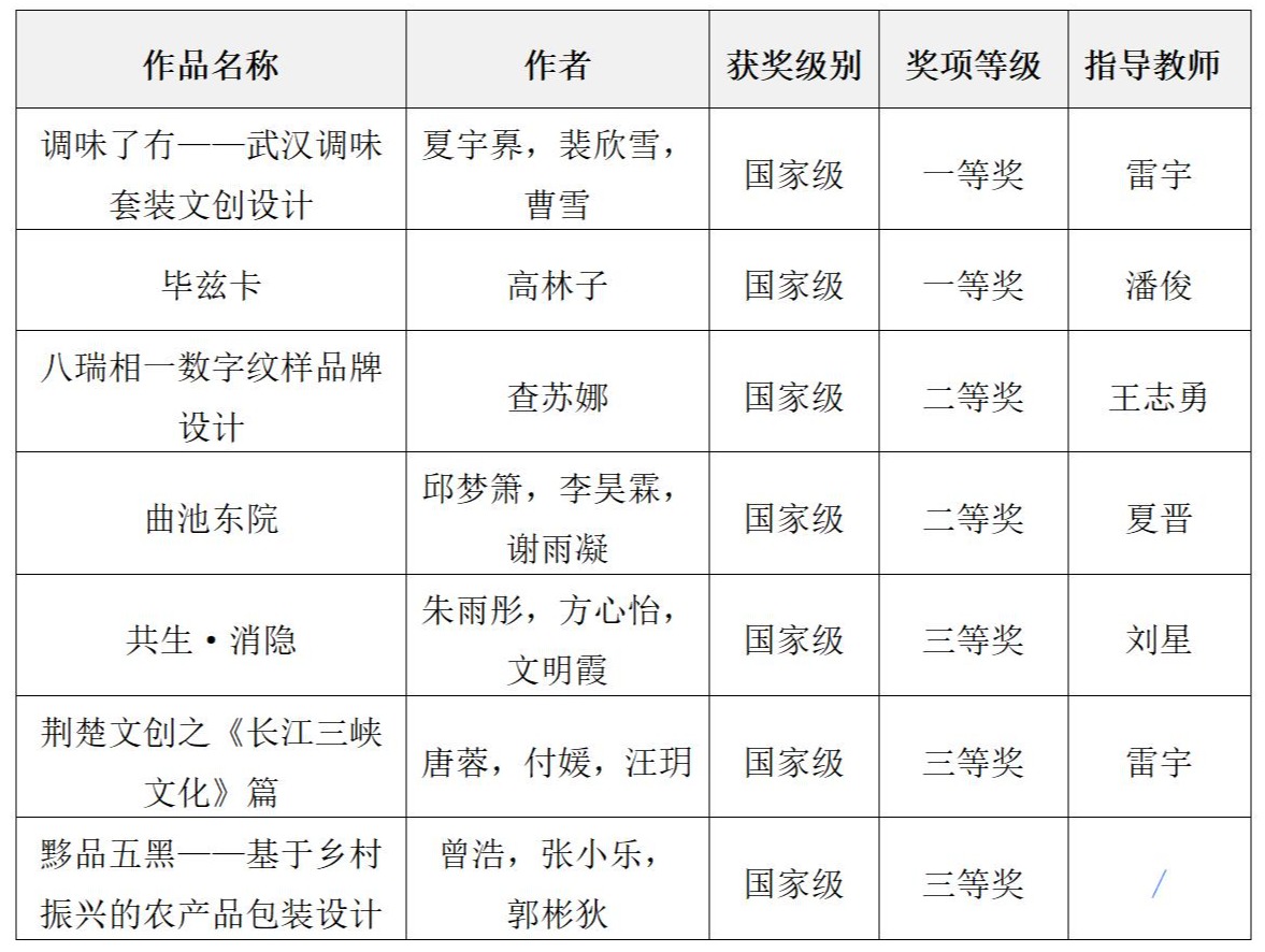 NCDA始于2012年,每年举办一届。必赢官网从2017年开始连续8年组织学生团队备赛参赛,活动由创新创业学院主办,美术学院承办。该赛事分为校赛、省赛和国赛三级赛,设有“非命题”“命题”“公益”“创新创业”4个赛道。设计内容包含元宇宙+设计、未来设计、国潮·非遗设计、视觉传达设计、动画与视频设计、交互设计、人居环境与规划设计、工业产品设计、时尚设计、虚拟IP及表情包设计、数字绘画、数字摄影、数字音乐等领域。今年,必赢官网共组织培育298件作品,经过专家评审,遴选出100件作品参加湖北赛区的评审,获得省级奖项29项,其中一等奖14项、二等奖5项、三等奖10项。在国赛中,必赢官网作品不负众望,喜获7项国奖。