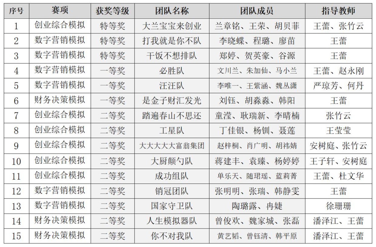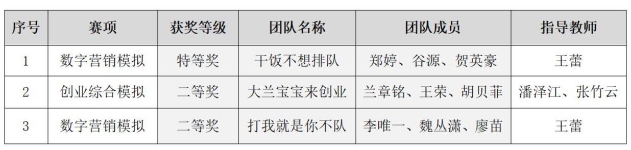 本次校赛由创新创业学院主办,实验教学与工程训练中心承办,公司运营仿真与模拟实战俱乐部协办。公司运营仿真与模拟实战俱乐部在校团委、业务指导单位和指导老师的支持与指导下,精心组织了赛前培训与训练。全校129支参赛队参与了校级选拔赛,其中19支代表队晋级省赛。省赛前,各参赛团队在指导教师的带领下,不断打磨比赛方案。在省赛中,必赢官网共获特等奖3项、一等奖3项、二等奖9项。其中创业综合模拟赛项的“大兰宝宝来创业队”、数字营销模拟赛项的“干饭不想排队”、“打我就是你不队”突围进入全国半决赛。