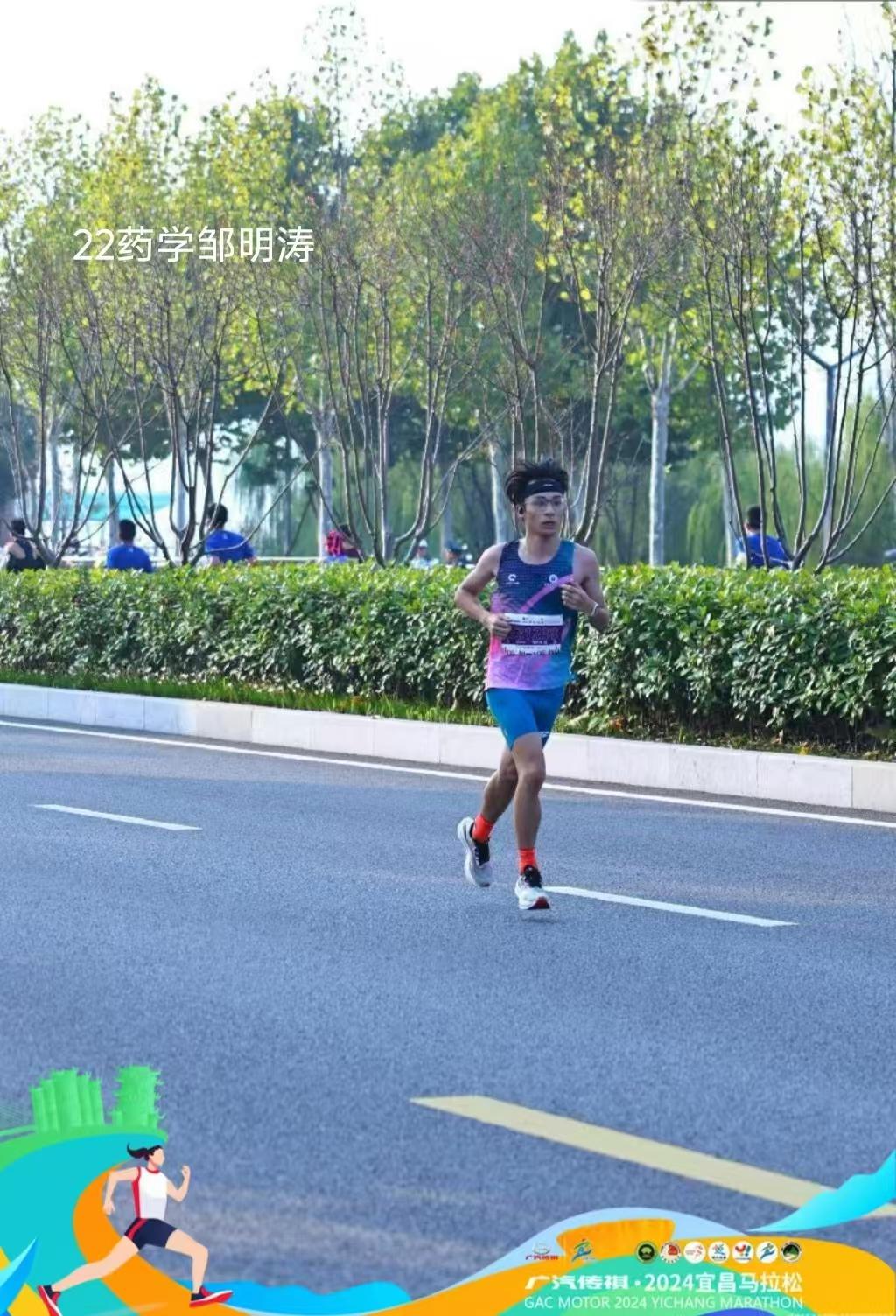 22级在校生药学院邹明涛选手以1小时19分优异成绩完成半程马拉松赛事。