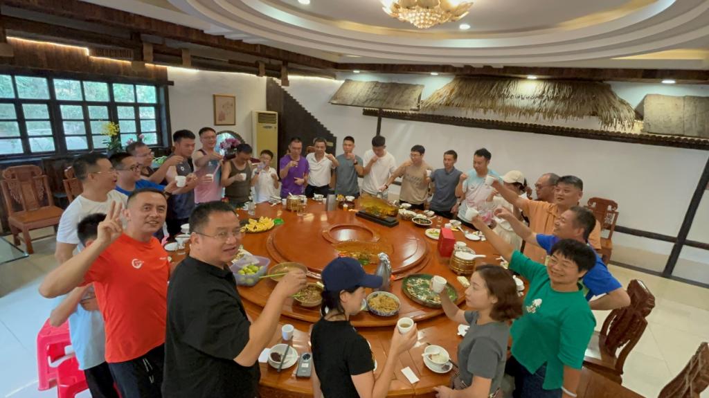 16日,参赛队员从全国各地,辗转到佛山高明。在领取参赛物资现场,由88级数学系吴天源和91级电子工程尹育健率领的应援队也与大家汇合,大家很快就相互介绍并熟络起来。在出发点的拱门下,大家举起横幅,留下相遇的美好瞬间。而此时,85级物理系校友杨惠民、86级经管系陶玉华伉俪已经为远道而来的校友们订下了欢迎晚宴。俱乐部副总队长07级管院李峰在席间对佛山校友会的支持表示感谢,并向参赛队员做了最后动员,提醒广东地区天气炎热,注意补水。